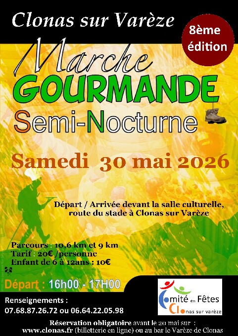 Le comité des fêtes organise la 8ième édition de sa marche gourmande semi nocturne, à partir de 16h sur un circuit champêtre de 11 km (1 variante de 9 km est également proposée).